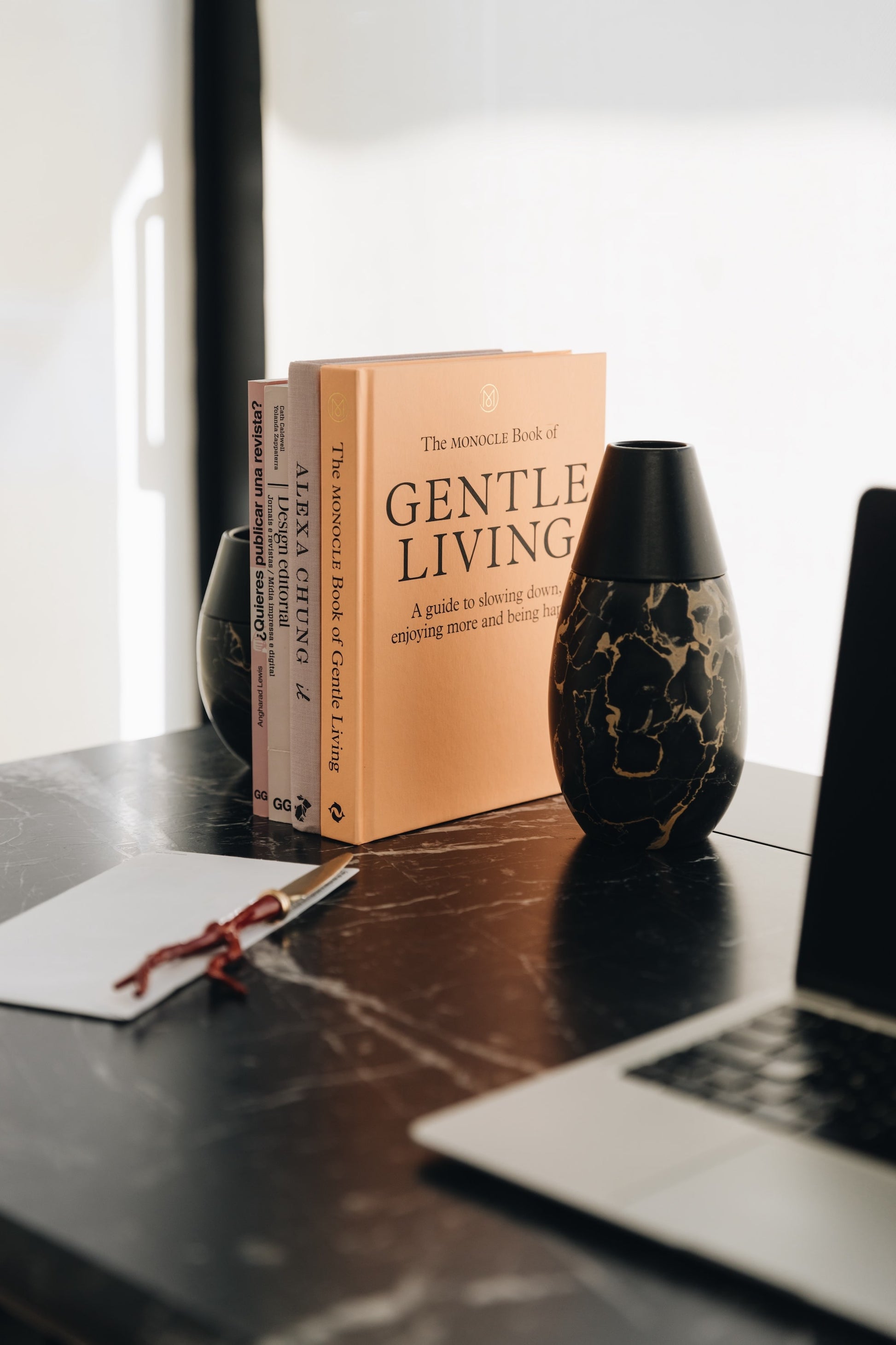 Born from the quiet power of nature and refined through thoughtful craftsmanship, this desk invites presence. The cool serenity of natural marble rests atop warm, tapered oak legs—an elemental harmony that anchors the space. The integrated drawer, carved into the wood with precision, hides away the noise of clutter, allowing you to return to stillness. Whether used for creation, contemplation, or connection, this desk stands not as a statement, but as a sanctuary—where the art of gentle living begins.